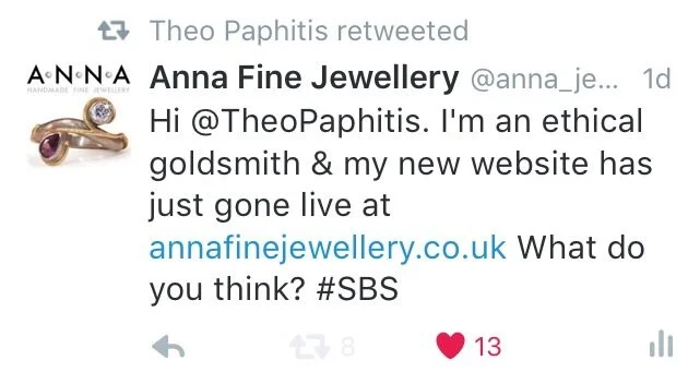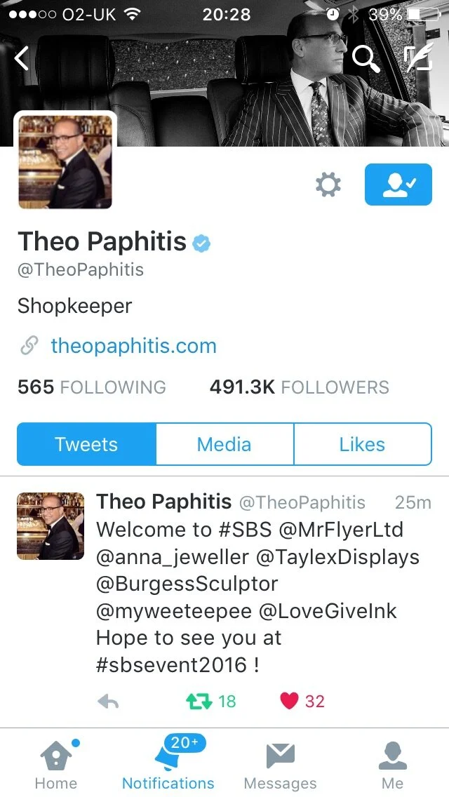 I'm thrilled, a little shocked and very excited for what happens now as last night Theo Paphitis retweeted my website to his 450,000 followers!!