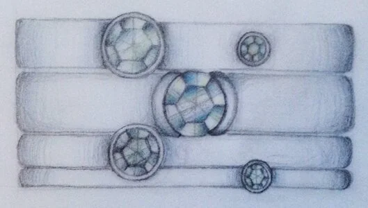 I thought I'd have a go at a time-lapse video today, so after carefully balancing and "sellotaping" my iPhone into position, I pressed go and filmed the creation of a commission drawing for a set of bespoke stacking rings...
