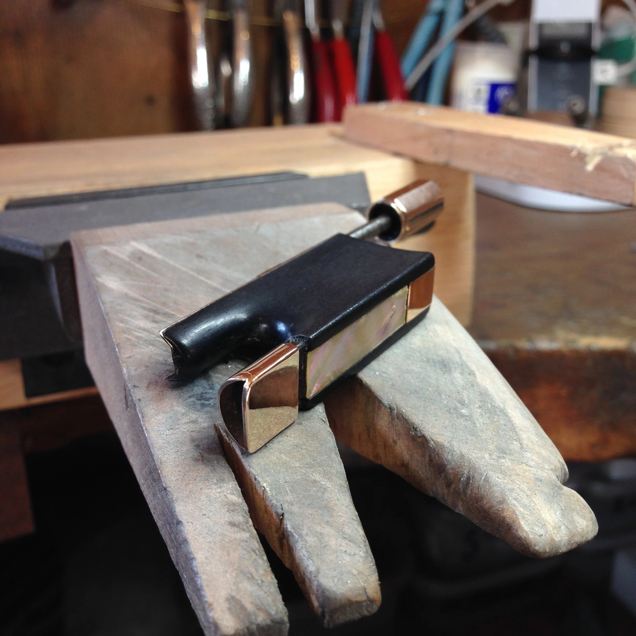 So, this job came about because I’m a violinist myself and a couple of years ago, I had got chatting to the fab violin maker, Padraig O’dubhlaoidh (http://www.hillsarts.co.uk/hibernianviolins/) that lives near to me. I had taken my violin into him for a couple of repairs and when he found out what I did for a living, he told me about how he sometimes gets asked to repair the silver and gold parts of high quality bows. Well, a couple of weeks ago, this very thing happened and he asked if I would be able to fix a broken solder join.