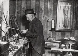 James Tubbs at his workbench in the shop at 94 Wardour Street, London. The photo taken in 1917 in his last years. (Thanks Wikipedia!)