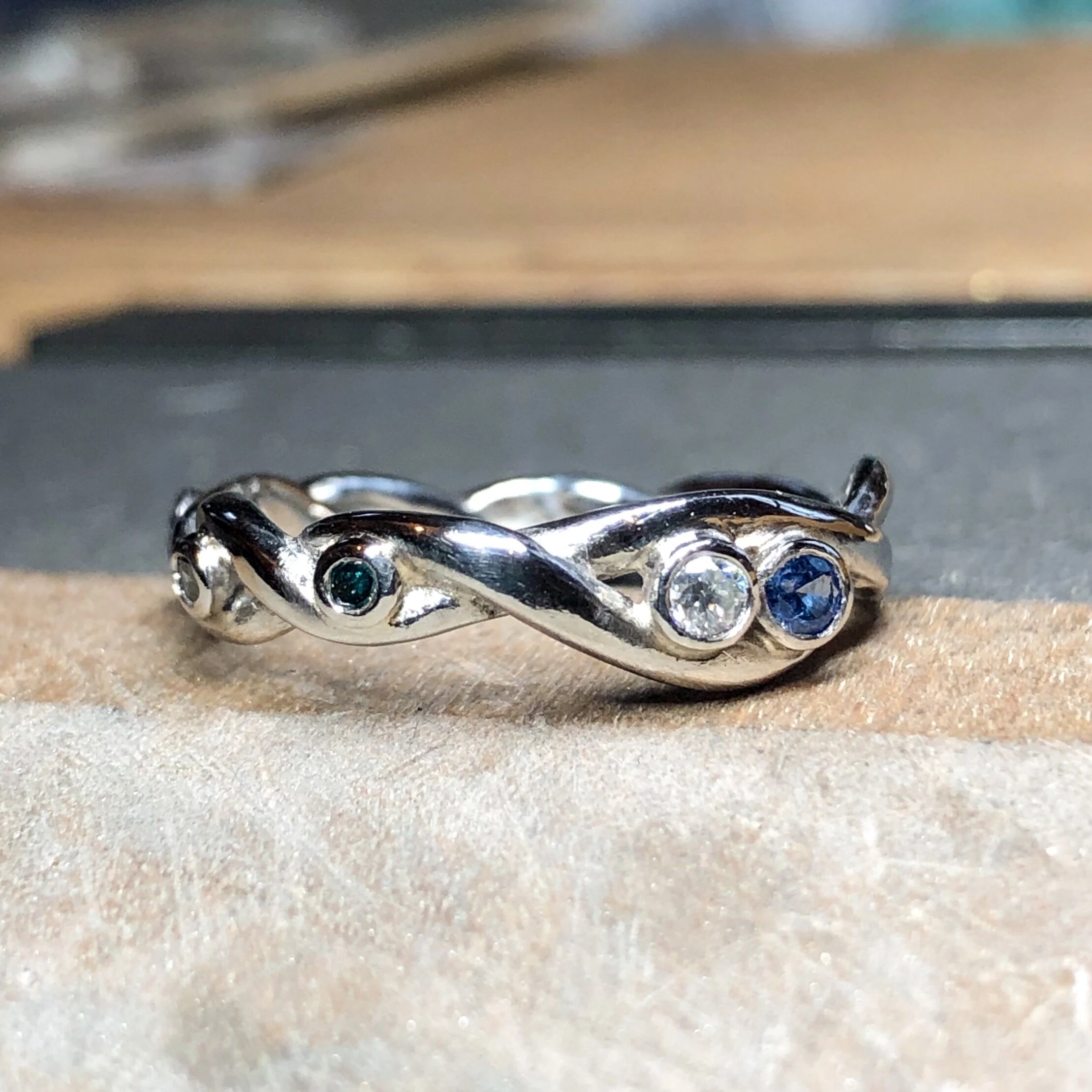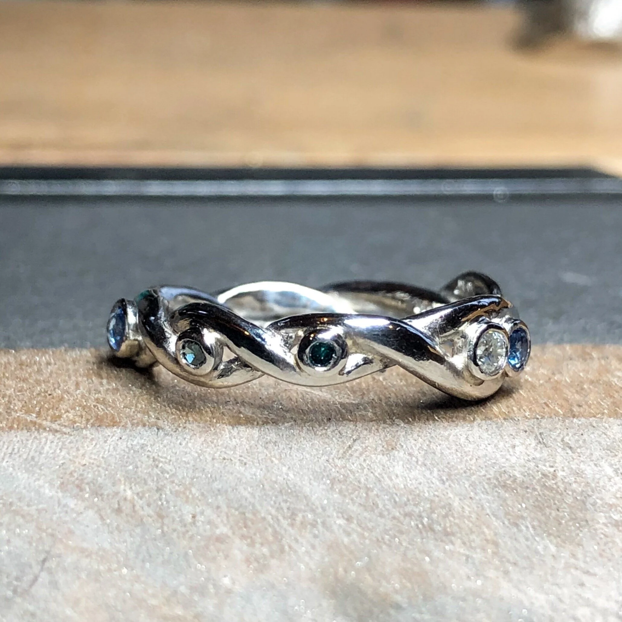 So here’s my offering for today....some photos of a platinum, sapphire and diamond ring that’s been a while in the making, and that has literally just been picked up. I dont even know if it fits or not yet, as it has to fit alongside the client’s existing wedding and engagement ring, that she can’t take off! So finger’s crossed, all was well, but the beauty of metal is that is can always be altered if it needs to be.