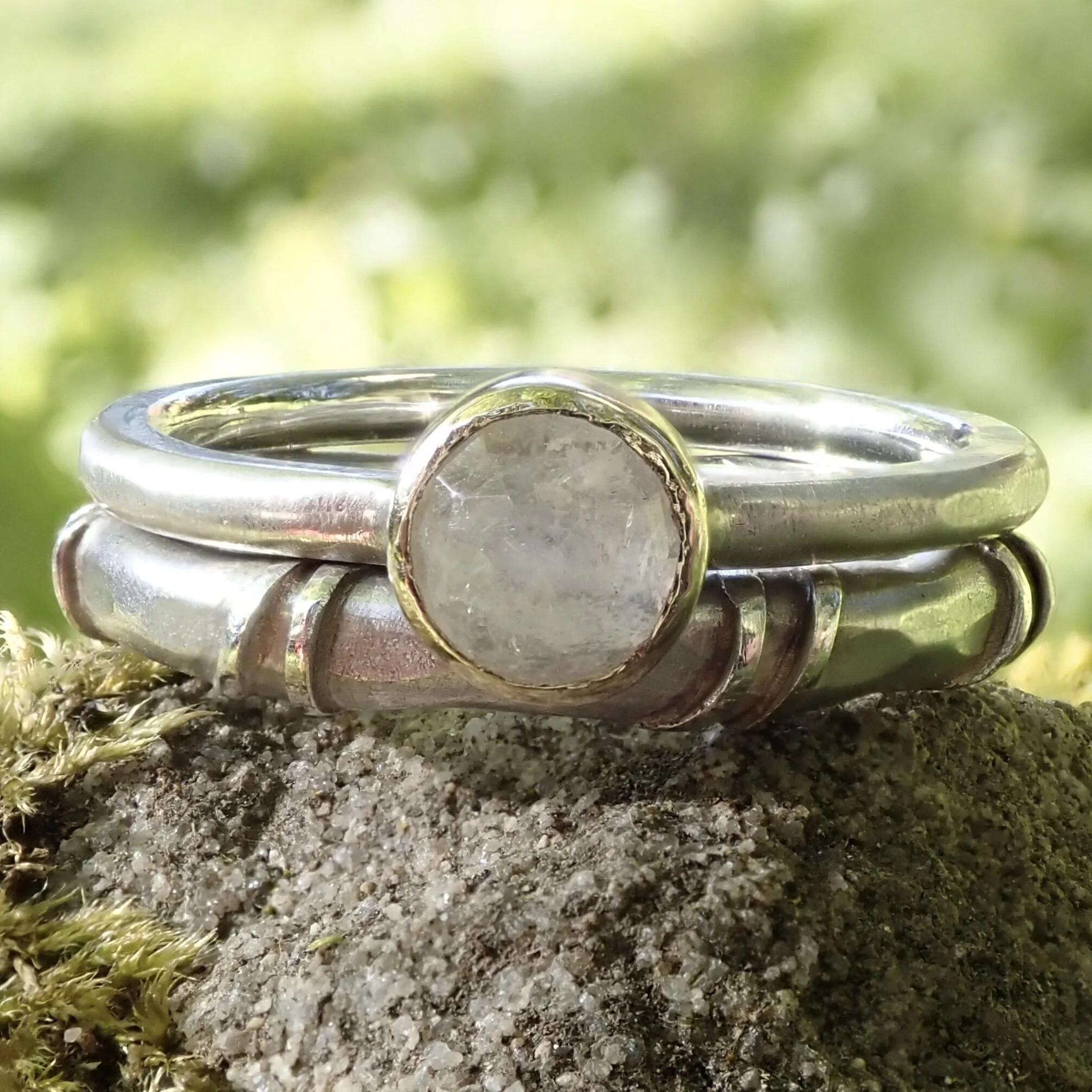 Recycled silver, gold and moonstone ring set, sold via #artistsupportpledge