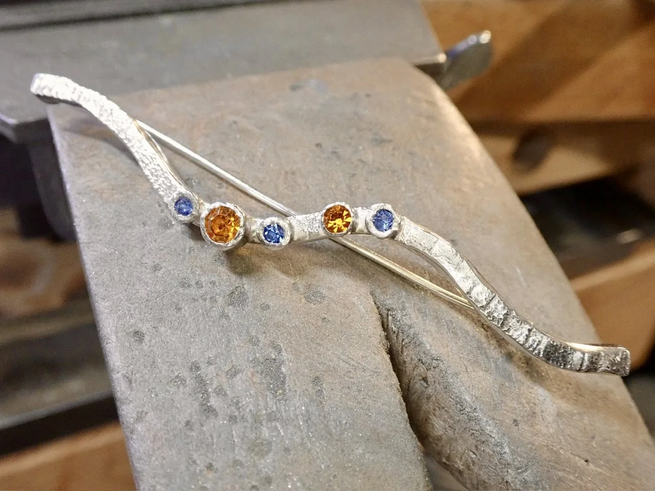The photo is of a recycled silver brooch that I actually made a few years ago, but I wanted to talk about what makes a gemstone “precious” and this highlights it perfectly.