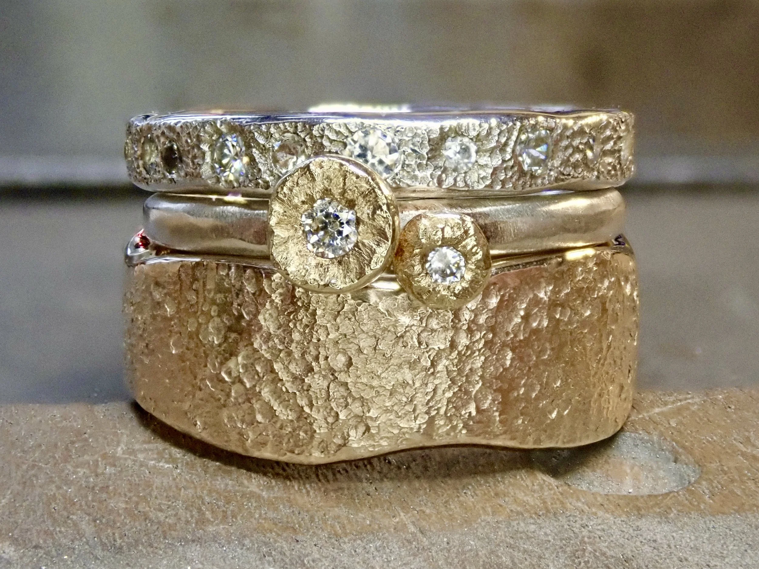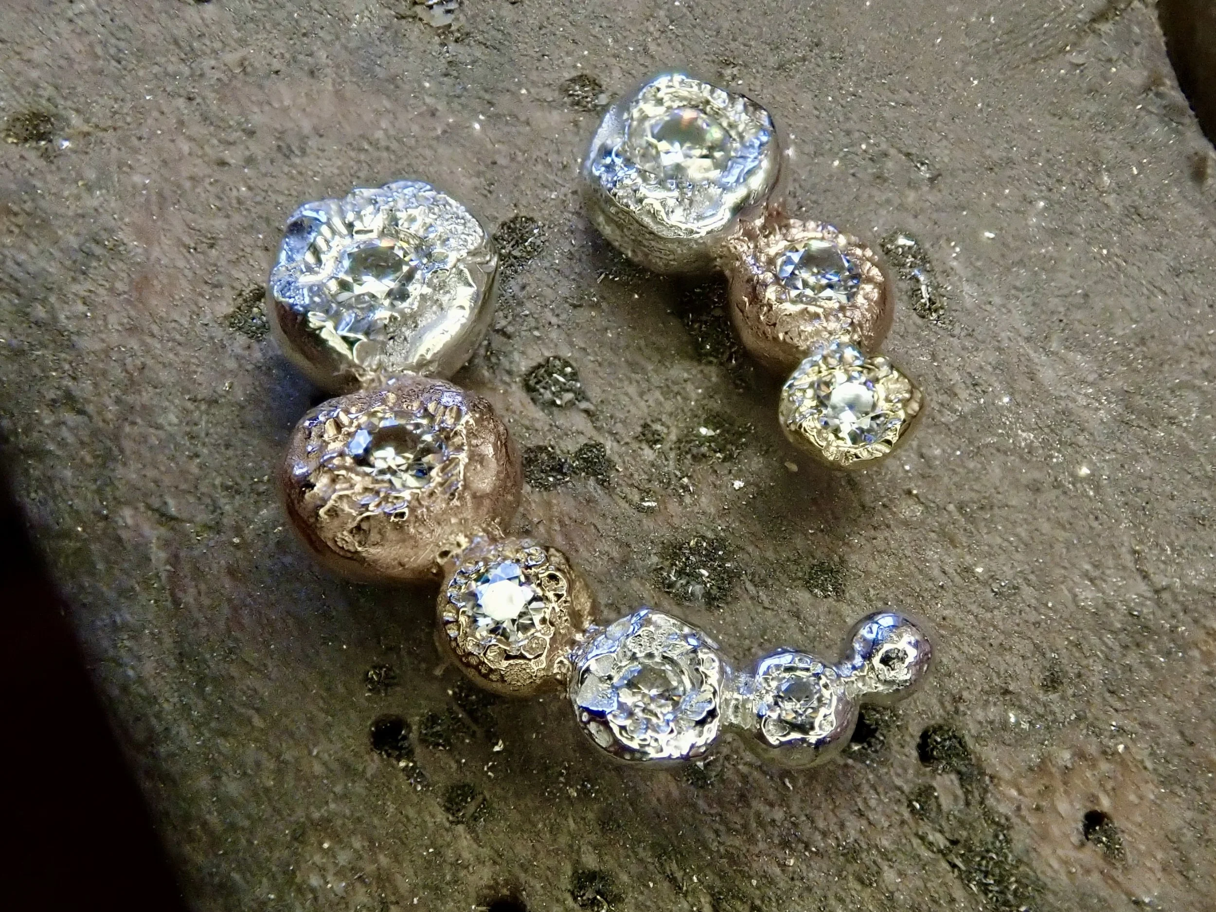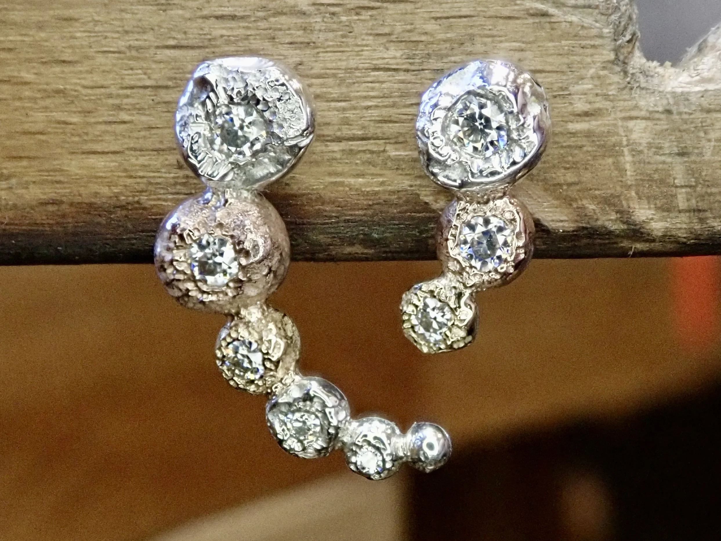 Recyled Gold and Moissanite “Pebble” Ear Studs