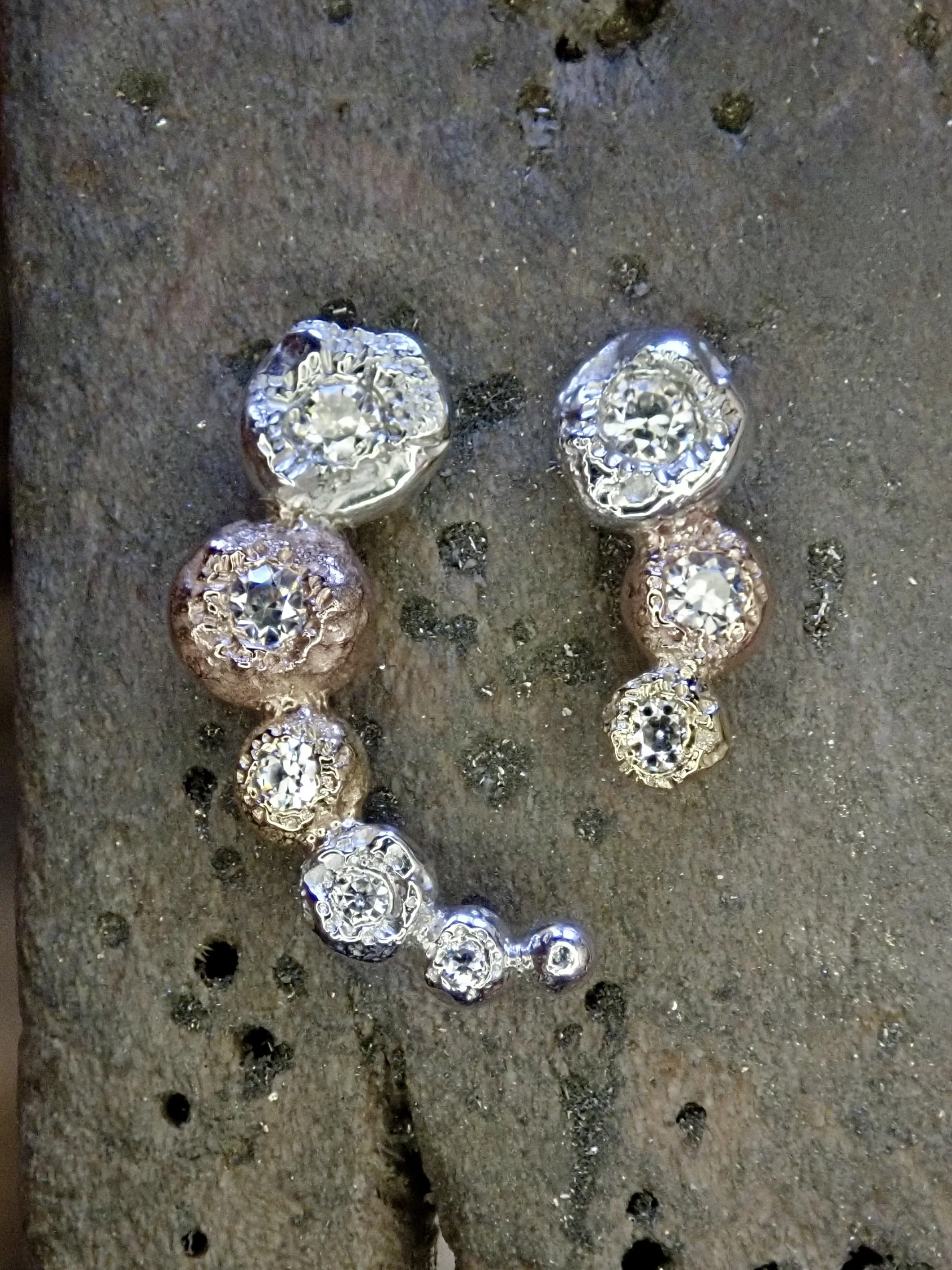 Silver, Gold and Moissanite “Asymetric” Ear Studs